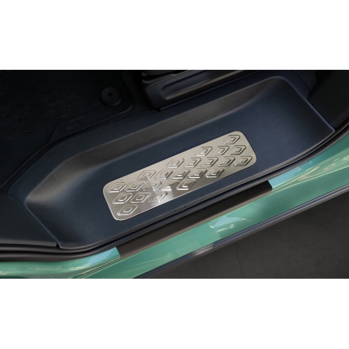 The STAINLESS STEEL door sills effectively protect the edges of your VOLKSWAGEN ID BUZZ against dents and scratches that may occur during entry and exit. In addition, they give your VOLKSWAGEN ID BUZZ a high-end appearance. This high-quality accessory is made in Europe.