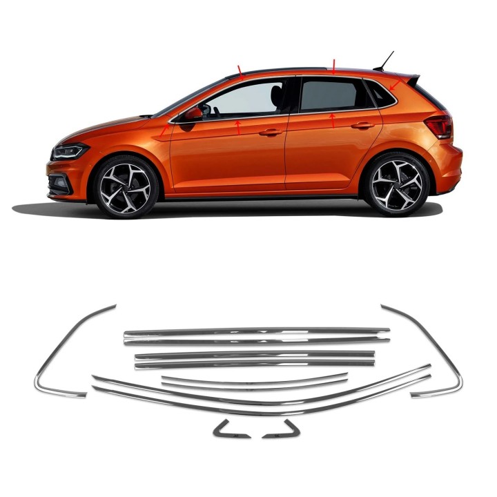 Window Trim VOLKSWAGEN POLO 2017 2021 STAINLESS CHROME 14 PIECES