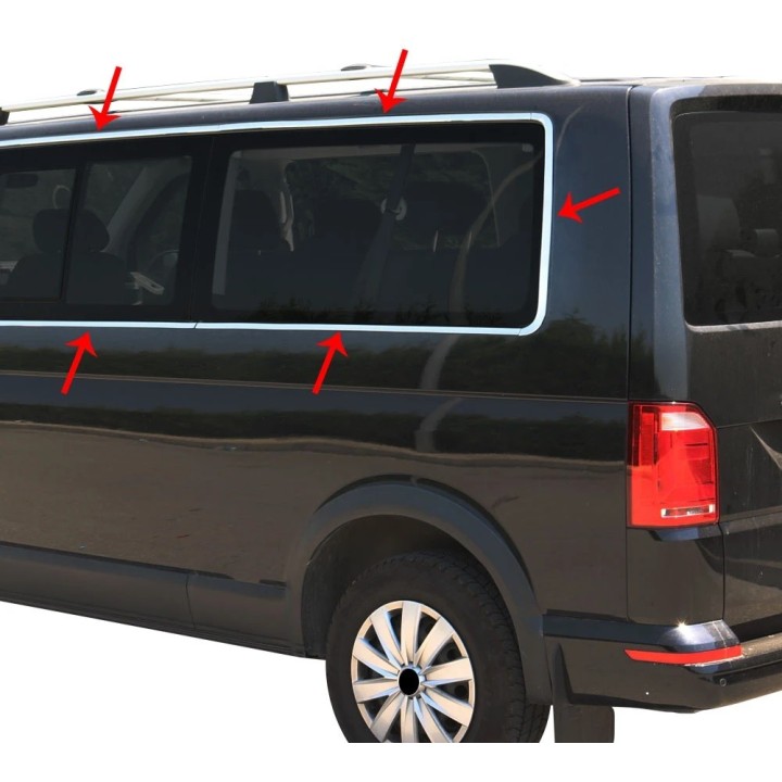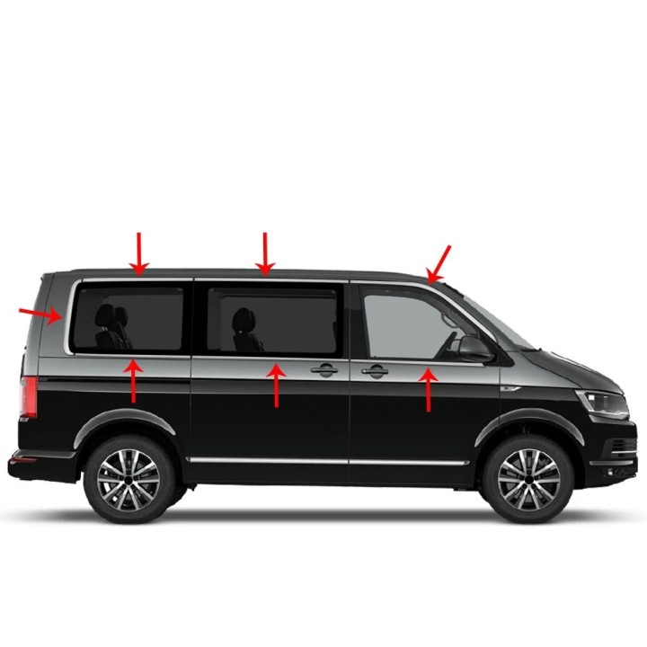 Window Trim VOLKSWAGEN T6 SHORT 2015 2019 STAINLESS STEEL CHROME 14 PIECES 1 X SIDE DOOR