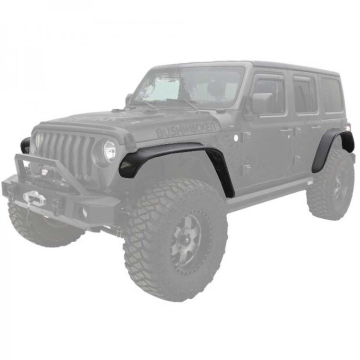 Be ready for anything: equip your Jeep with Bushwacker Flat Style fender flares. They are designed to absorb impacts using the exclusive Dura-Flex 2000 TPO material, the thickest and most flexible material available. Flat style fender flares maximize your tire coverage and wheel articulation for intense off-road use. Yet, they are carefully designed to be installed with minimal tools and additional bodywork. The design integrates seamlessly with factory rock sliders and incorporates DOT-compliant LED side marker lights and fully molded wheel well protection. The flares are also UV protected to prevent chalking in their tracks. If you want the look and real performance that best suits an American icon, nothing goes better with your Jeep than Bushwacker Flat Style fender flares.