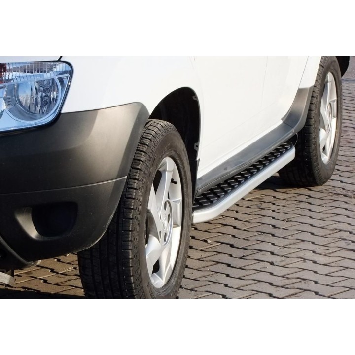 Running boards are wide aluminum plates with a profiled top. This ensures maximum slip resistance and helps you get into your vehicle safely.