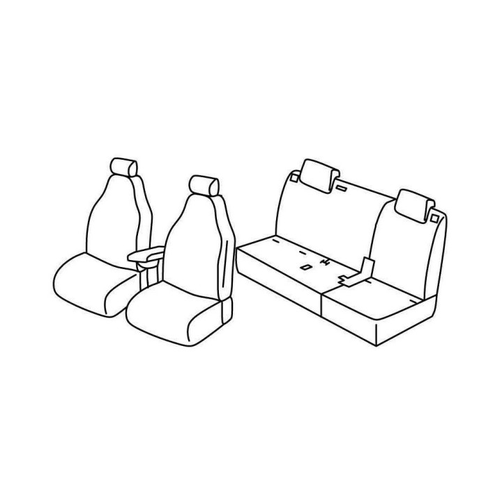 set of custom-made fabric covers for front (2 front seats + armrest + 2 headrests) + (rear bench: seat + backrest + headrests)