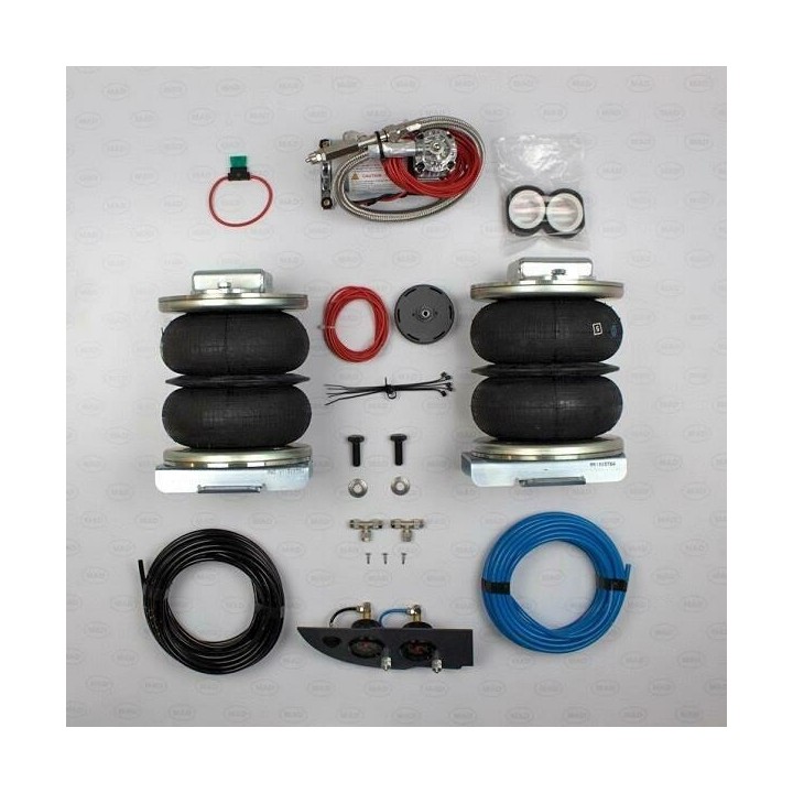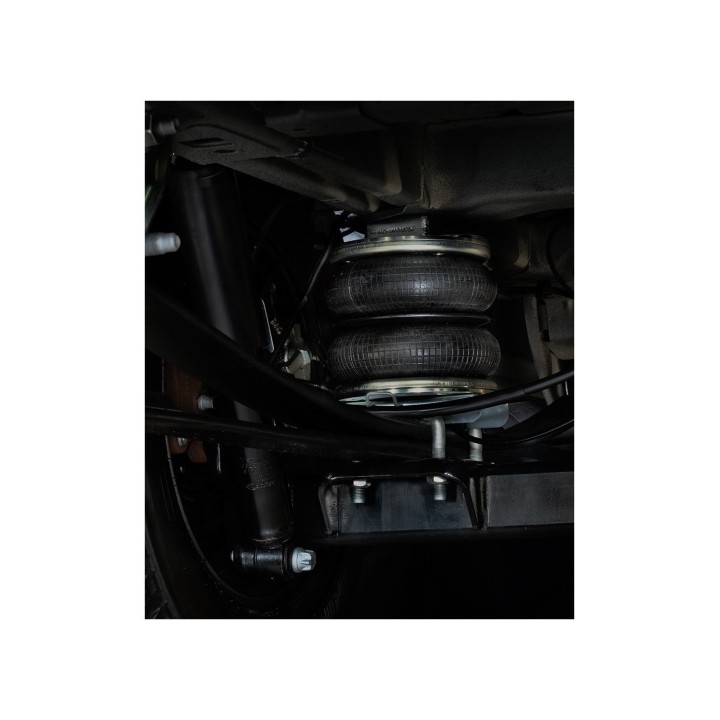 MAD suspension is generally designed to work with the vehicle's original rear leaf spring suspension (semi-air suspension). Available in different versions, it is suitable for motorists who wish to adjust the stiffness of their suspension themselves. Air suspension is available with manual filling, as air access is required to inflate the bellows to the desired pressure. It is also available with a compressor and a pressure gauge, allowing the pressure to be adjusted by oneself, even while driving. There is also a full air suspension that compensates for the original suspension and automatically adjusts the load level.