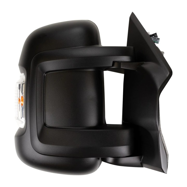 aRight exterior mirror with short mirror arm suitable for Fiat Ducato, Citroen Jumper and Peugeot Boxer from model year 2018. The OEM mirror is equipped with blind spot assist and motion sensor.