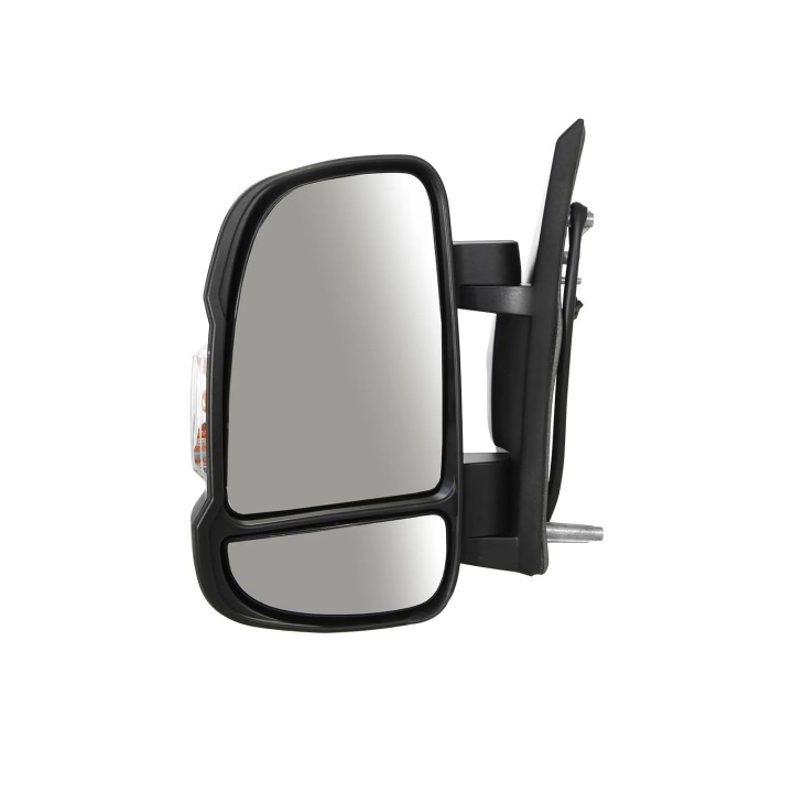 Left exterior mirror with short mirror arm suitable for Fiat Ducato 250, Citroen Jumper and Peugeot Boxer. The OEM mirror does not include an antenna.