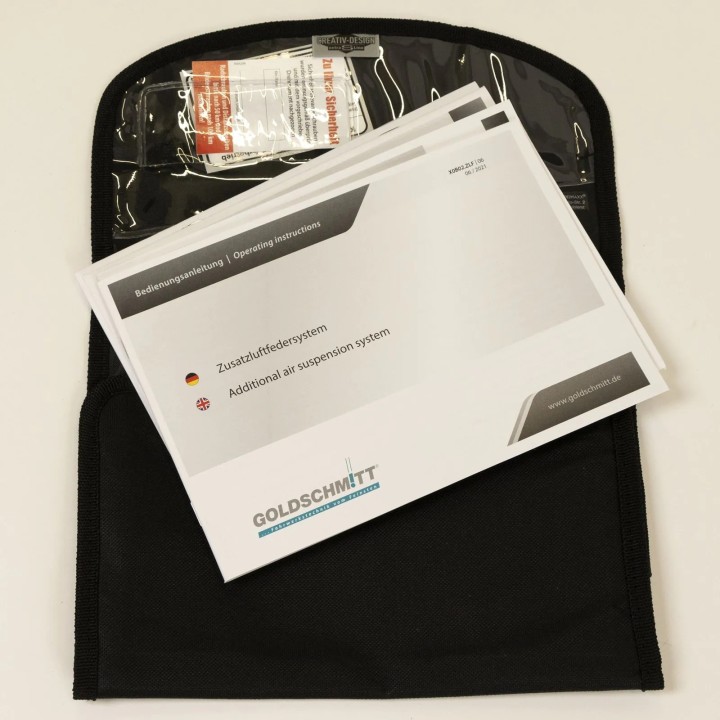 2-circuit additional air suspension system for the rear axle of the Fiat Ducato X250 (from 2006) with standard leaf spring chassis and electric parking brake. Also suitable for identical Citroën Jumper and Peugeot Boxer models. Scope of delivery: double folding bellows (8 inches), support brackets, 12 volt compressor (medium), 2-circuit control panel (vehicle-specific, electric) with 2 pressure gauges (without LED lighting), compressor bracket, mounting material, technical documentation. Especially for Fiat Ducato Series 8 with electric parking brake + compressor support. Also suitable with rear stabilizer!