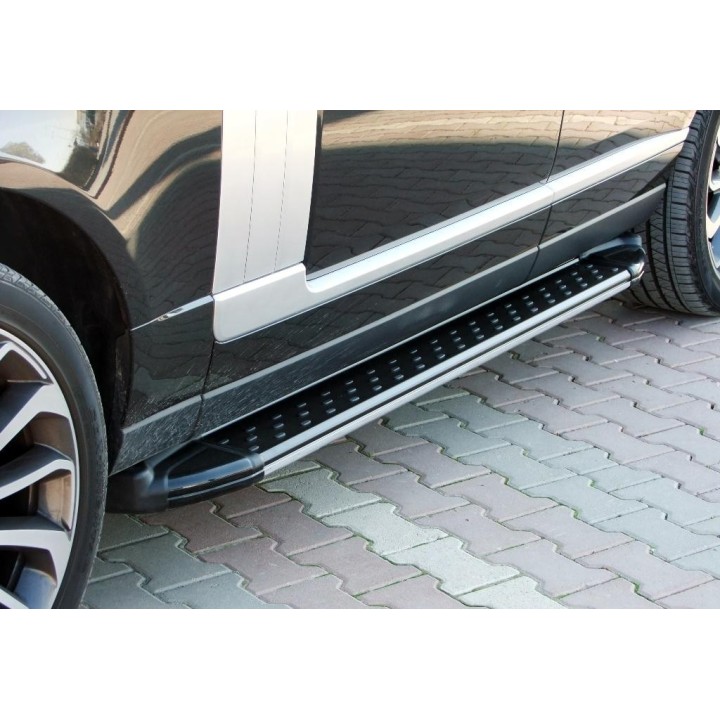 Running boards are wide aluminum plates with a profiled top. This ensures maximum slip resistance and helps you get into your vehicle safely.