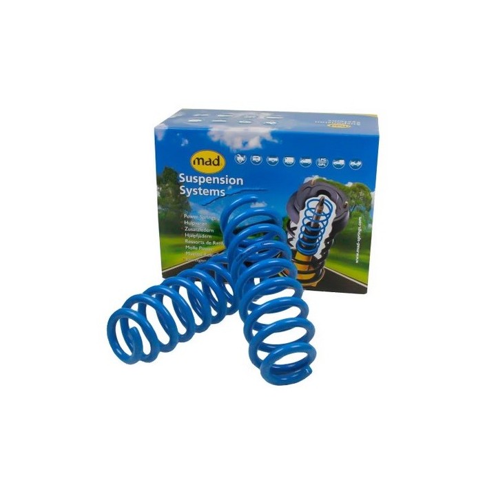 Complete set of 2 rear load springs / lifting springs for your Ford Tourneo Connect 2022+. This load suspension / lifting suspension raises the vehicle by 15 to 20 mm at the rear, thus increasing ground clearance and giving it a more elegant aesthetic. The springs are progressive and stiffen with higher loads. All MAD products are TÜV approved and rigorously tested, with no impact on other vehicle parts. This set is suitable for vehicles operating with variable loads from 0 to 200 kg. At the maximum authorized load, the vehicle maintains its original loading height.