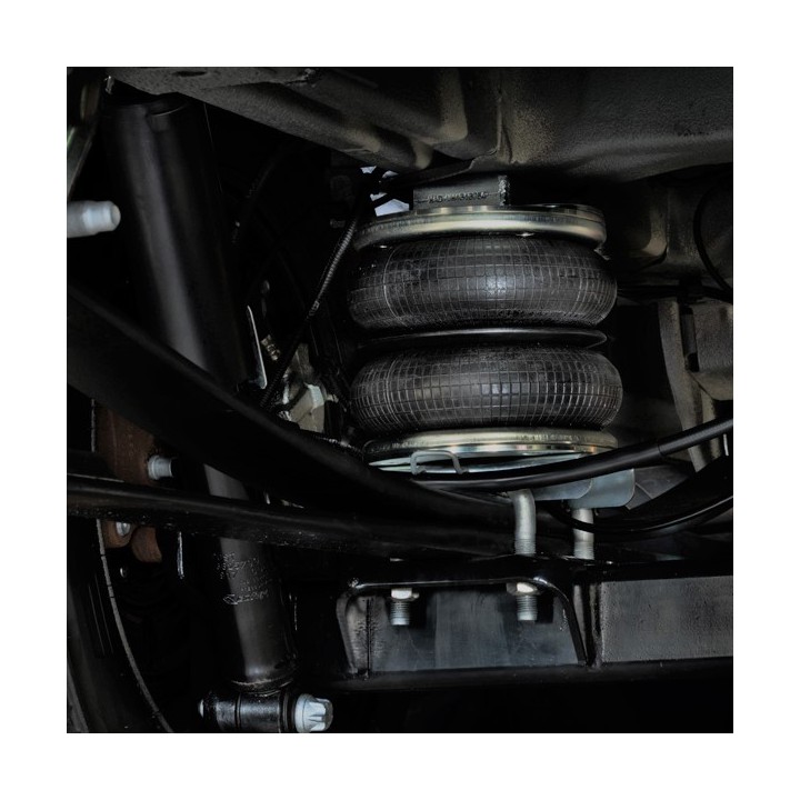 In most cases, MAD is designed to work with the car's original rear leaf spring suspension (semi-air suspension). Air suspension is available in different variants and is suitable for car owners who want to be able to adjust the stiffness of their suspension themselves. Air suspension is available with manual filling as you need access to air to fill the bellows to the desired pressure. It is also available with a compressor and a pressure gauge so you can adjust the desired pressure yourself, even while driving.