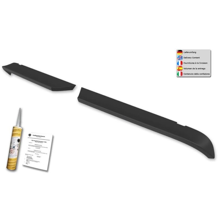 The roof spoiler for MAN TGE H1 double doors is made of hard high-pressure polyurethane and not polyester. Polyurethane is a more durable and more expensive material with easy and excellent installation. All spoilers are produced in aluminum molds for increased quality and endurance in mass production. They are tested for their durability at high temperatures as well as for their aerodynamic efficiency and designed in every detail. The MAN TGE H1 roof spoiler is not primed.