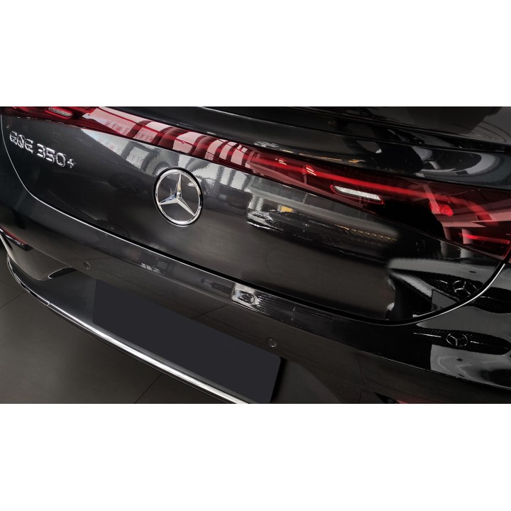 This boot sill protection with edges effectively protects against dents and scratches during loading and unloading. Thanks to its shape, like the ribbed pattern on top, it is designed to perfectly match the MERCEDES EQE's design. And if you ever want to replace the protector after intensive use, that's also possible. It will be much cheaper than repainting your bumper.