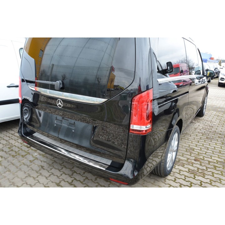 This boot sill protection with edges effectively protects against dents and scratches during loading and unloading. Thanks to its shape, like the ribbed pattern on top, it is designed to perfectly match the design of the MERCEDES VITO CLASSE V. And if you ever want to replace the protector after intensive use, that's also possible. It will be much cheaper than repainting your bumper.