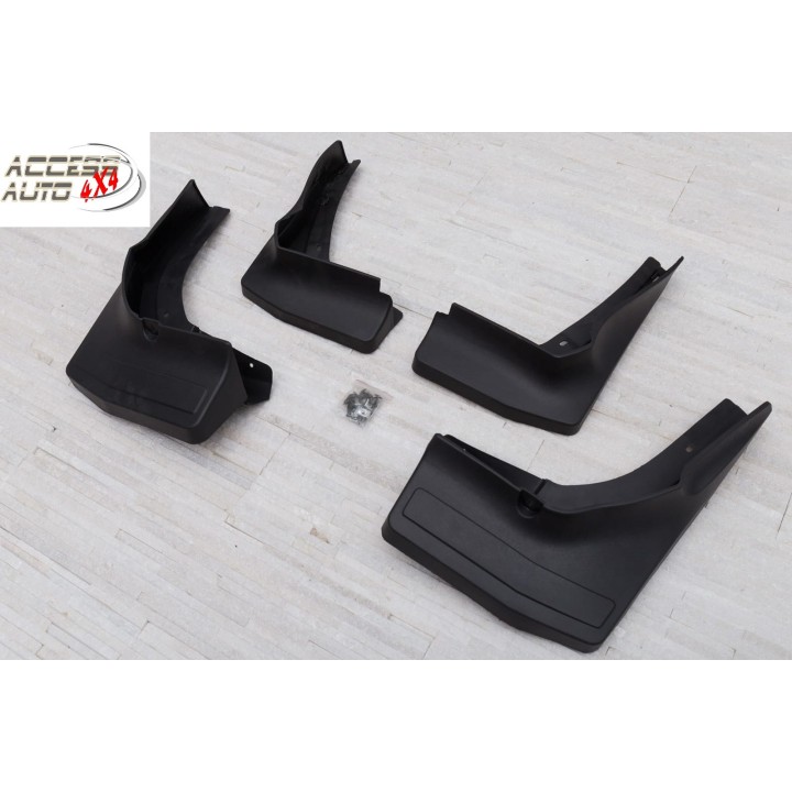 The set includes a set of 4 mud flaps as well as its fastening system .