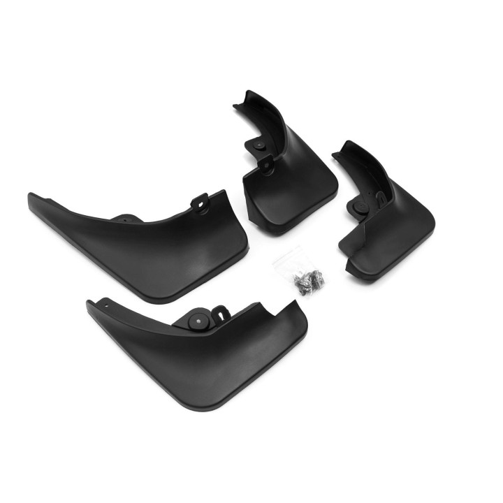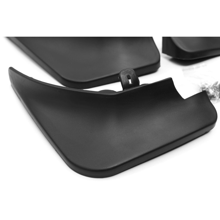 These specific mud flaps are designed to blend perfectly with the car's exterior line. They effectively protect the sides of the car againststone splashes from under the wheels and reduce the amount of water sprayed on cars driving behind. They are made of high-quality plastic, ensuringadequate flexibility, durability, and an aesthetic appearance of the product for a long period of use.