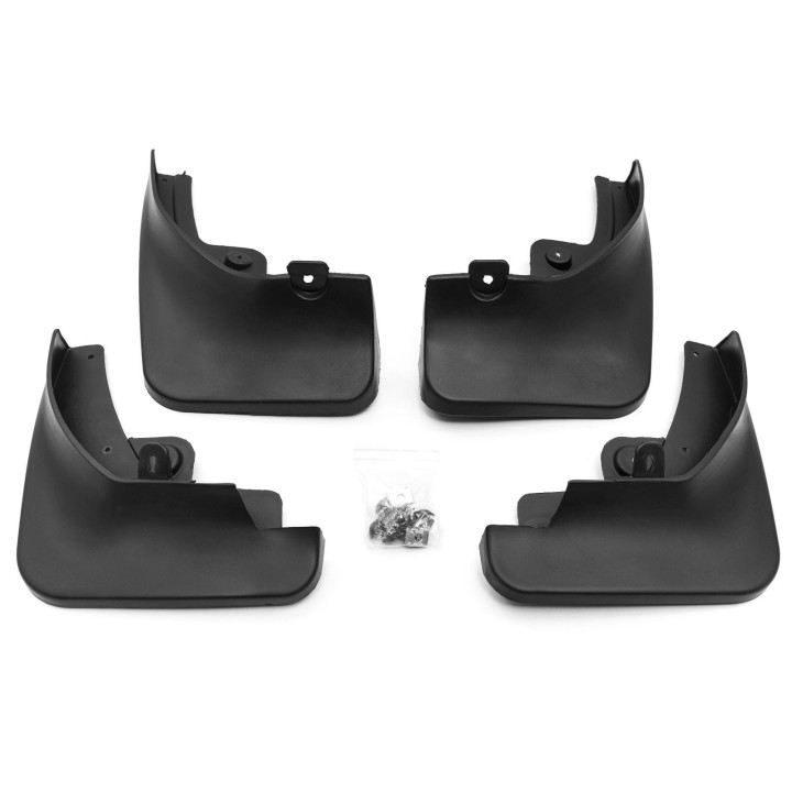 The set includes a set of 4 mud flaps as well as its fastening system .