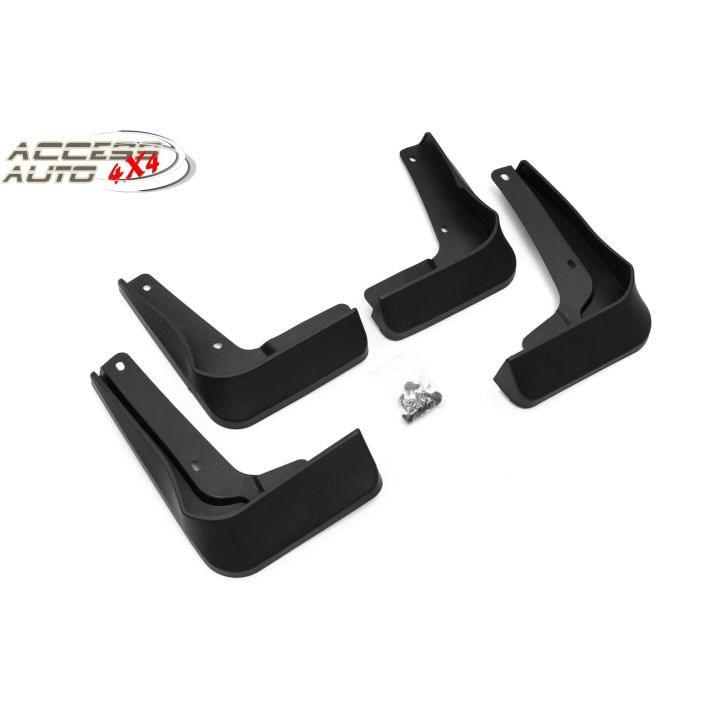The set includes a set of 4 mud flaps as well as its fastening system .