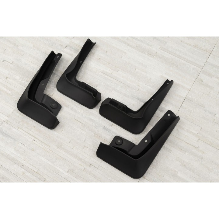 These specific mud flaps are designed to blend perfectly with the car's exterior line. They effectively protect the sides of the car againststone splashes from under the wheels and reduce the amount of water sprayed on cars driving behind. They are made of high quality plastic, ensuringadequate flexibility, durability and an aesthetic appearance of the product for a long period of use.