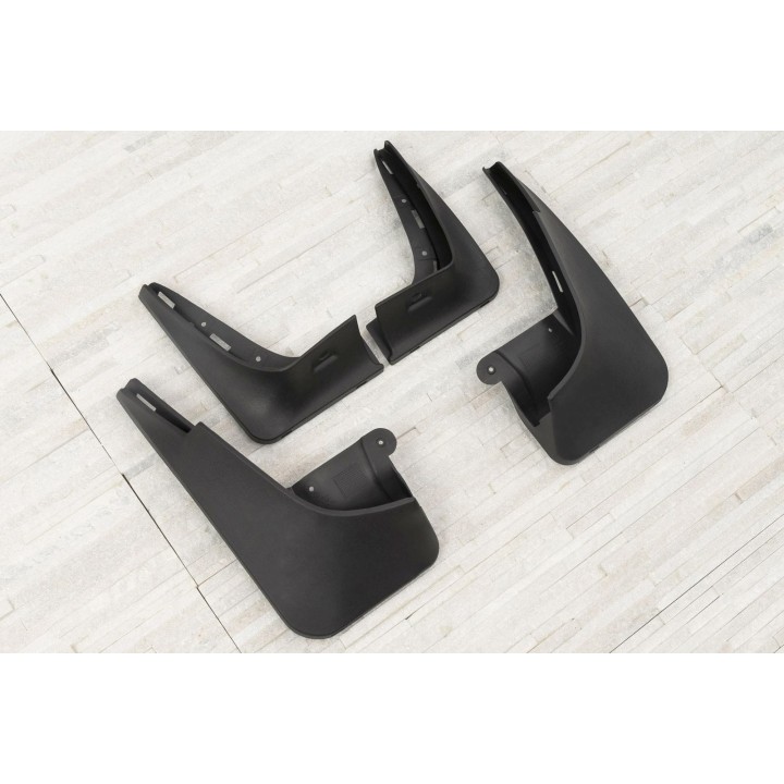 These specific mud flaps are designed to blend perfectly with the car's exterior line. They effectively protect the sides of the car againststone splashes from under the wheels and reduce the amount of water sprayed on cars driving behind. They are made of high quality plastic, ensuringadequate flexibility, durability and an aesthetic appearance of the product for a long period of use.