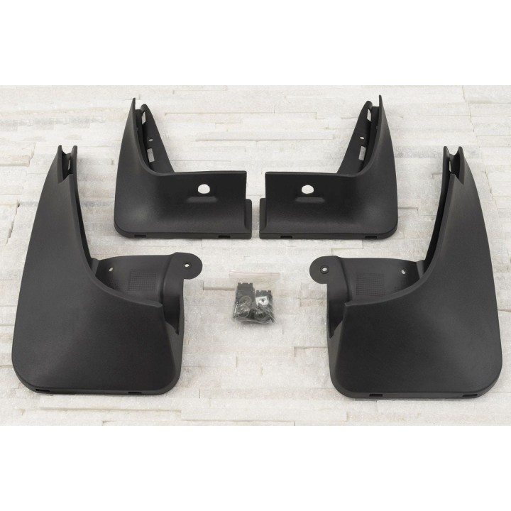 The set includes a set of 4 mud flaps as well as its fastening system .