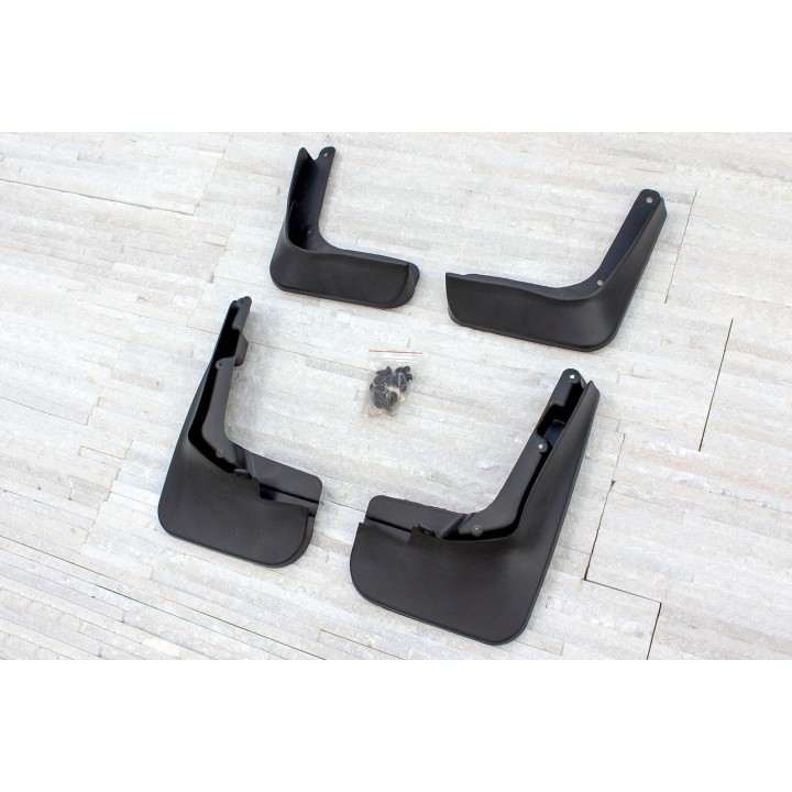 The set includes a set of 4 mud flaps as well as its fastening system .