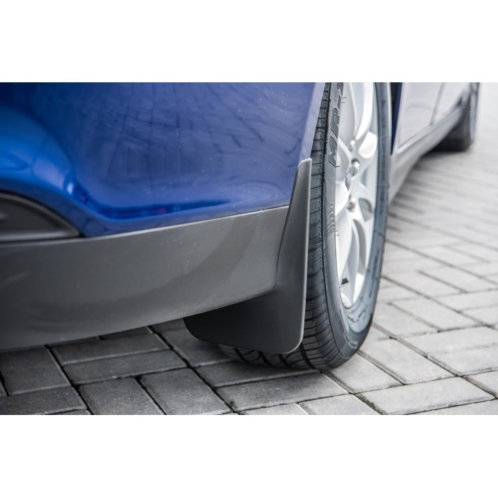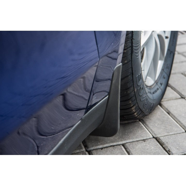 These specific mud flaps are designed to blend perfectly with the car's exterior line. They effectively protect the sides of the car againststone splashes from under the wheels and reduce the amount of water sprayed on cars driving behind. They are made of high-quality plastic, ensuringadequate flexibility, durability, and an aesthetic appearance of the product for a long period of use.