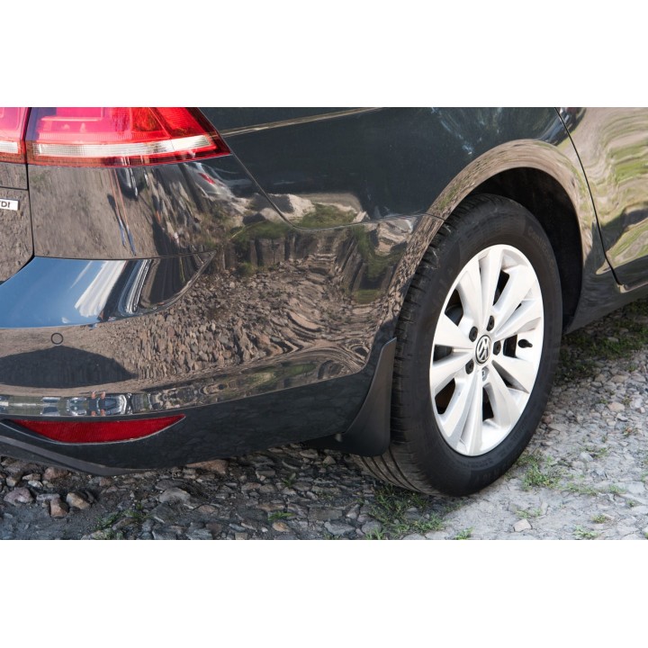 These specific mud flaps are designed to blend perfectly with the car's exterior line. They effectively protect the sides of the car againststone splashes from under the wheels and reduce the amount of water sprayed on cars driving behind. They are made of high-quality plastic, ensuringadequate flexibility, durability, and an aesthetic appearance of the product for a long period of use.