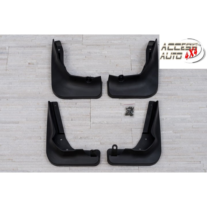 The set includes a set of 4 mud flaps as well as its fastening system .