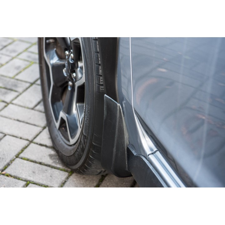 These specific mud flaps are designed to blend perfectly with the car's exterior line. They effectively protect the sides of the car againststone splashes from under the wheels and reduce the amount of water sprayed on cars driving behind. They are made of high-quality plastic, ensuringadequate flexibility, durability and an aesthetic appearance of the product for a long period of use.
