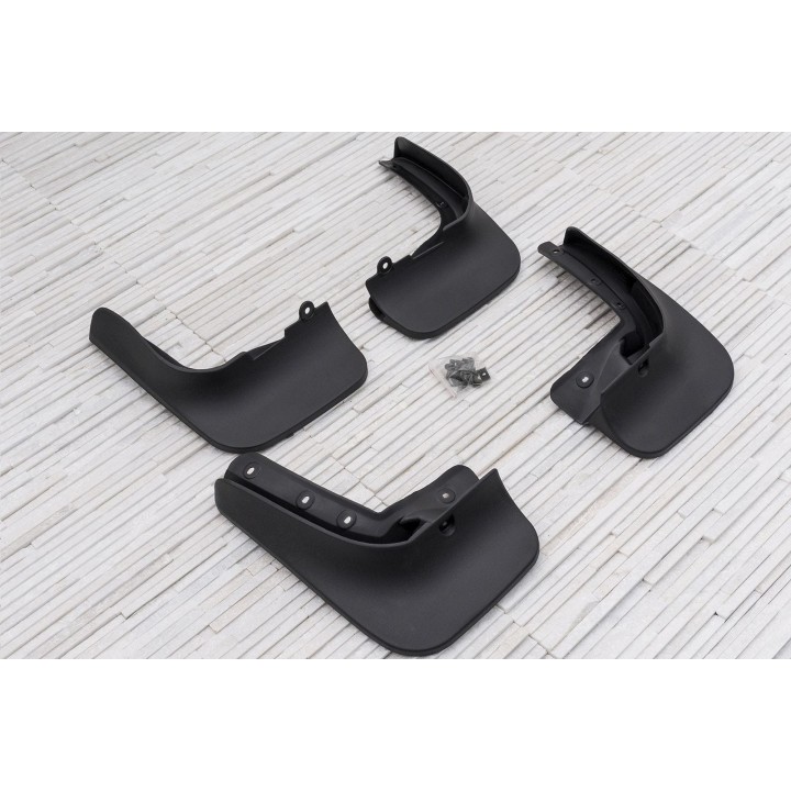 These specific mud flaps are designed to blend perfectly with the car's exterior line. They effectively protect the sides of the car againststone splashes under the wheels and reduce the amount of water sprayed on cars driving behind. They are made of high quality plastic, ensuringadequate flexibility, durability and aesthetic appearance of the product for a long period of use.