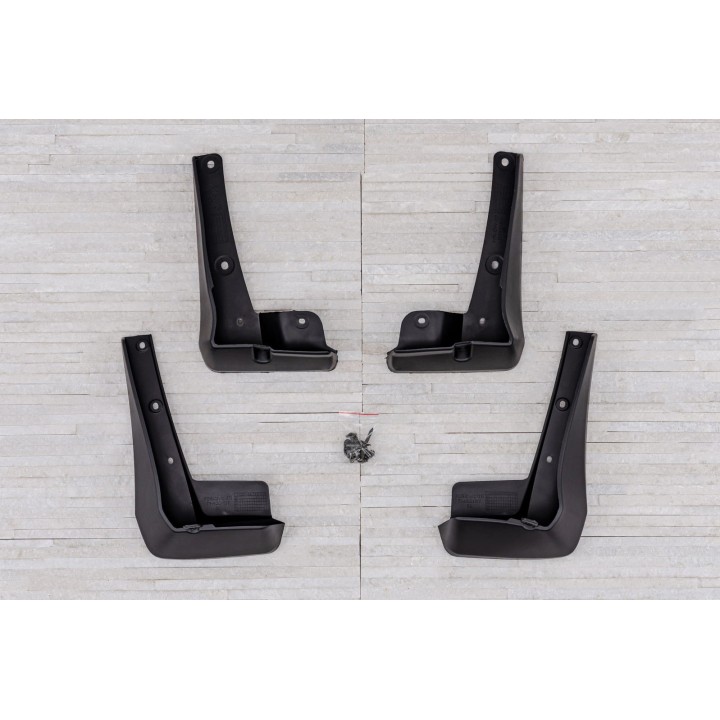 These specific mud flaps are designed to blend perfectly with the car's exterior line. They effectively protect the sides of the car againststone splashes from under the wheels and reduce the amount of water sprayed on cars rolling behind. They are made of high-quality plastic, ensuringadequate flexibility, durability and an aesthetic appearance of the product for a long period of use.