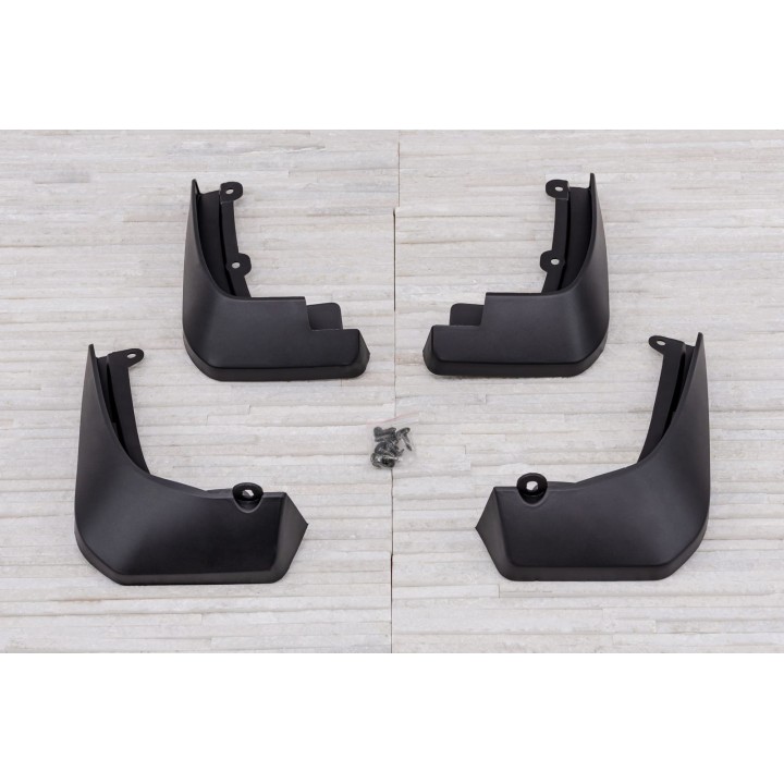 The set includes a set of 4 mud flaps and their fastening system .