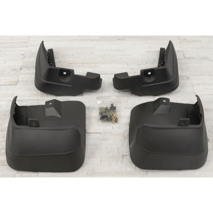 The set includes a set of 4 mud flaps as well as its fastening system .