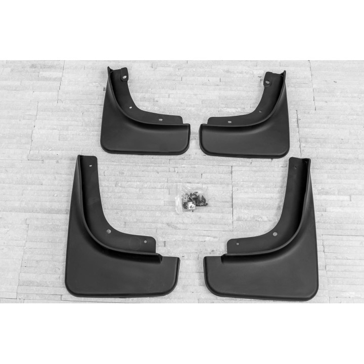 These specific mud flaps are designed to blend perfectly with the car's exterior line. They effectively protect the sides of the car againststone splashes from under the wheels and reduce the amount of water sprayed on cars driving behind. They are made of high-quality plastic, ensuringadequate flexibility, durability, and aesthetic appearance of the product for a long period of use.