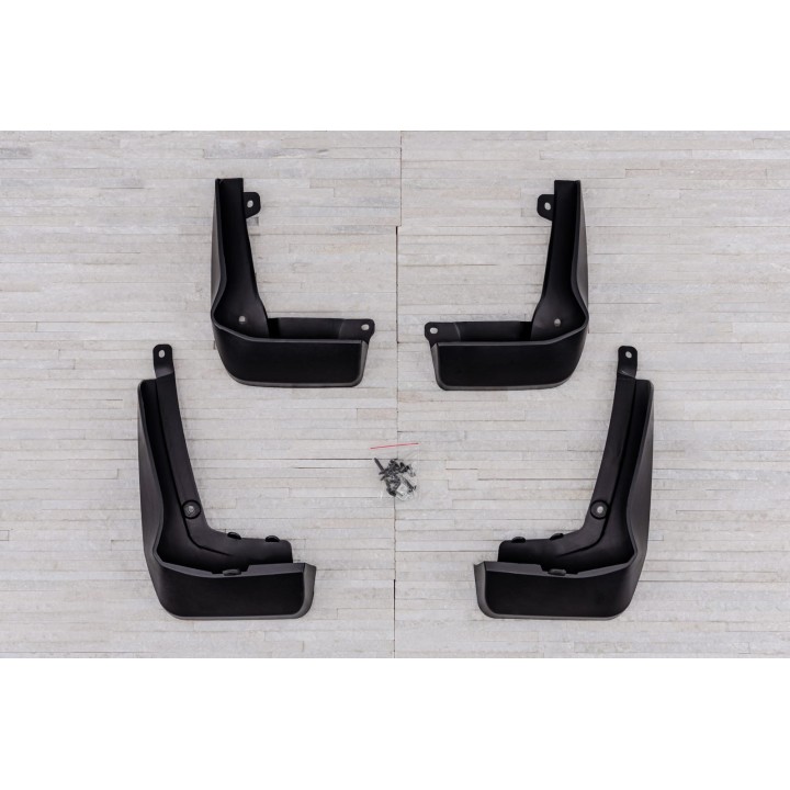 These specific mud flaps are designed to blend perfectly with the car's exterior line. They effectively protect the sides of the car against stone splashes from under the wheels and reduce the amount of water sprayed on cars driving behind. They are made of high quality plastic, ensuring adequate flexibility, durability and an aesthetic appearance of the product for a long period of use.