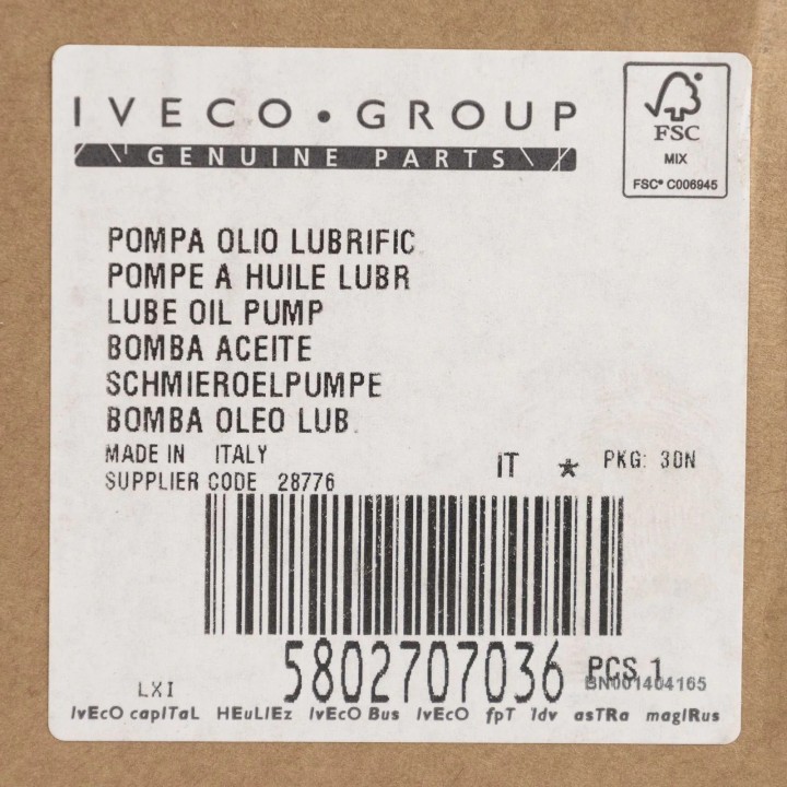 Original Oil Pump Fiat, Iveco REF 5802707036: