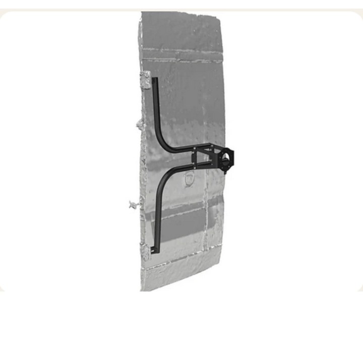 The wheel carriers pivot on the existing door hinges and require drilling a hole in the door skin. This wheel carrier can be installed in vans with 180-degree hinges.