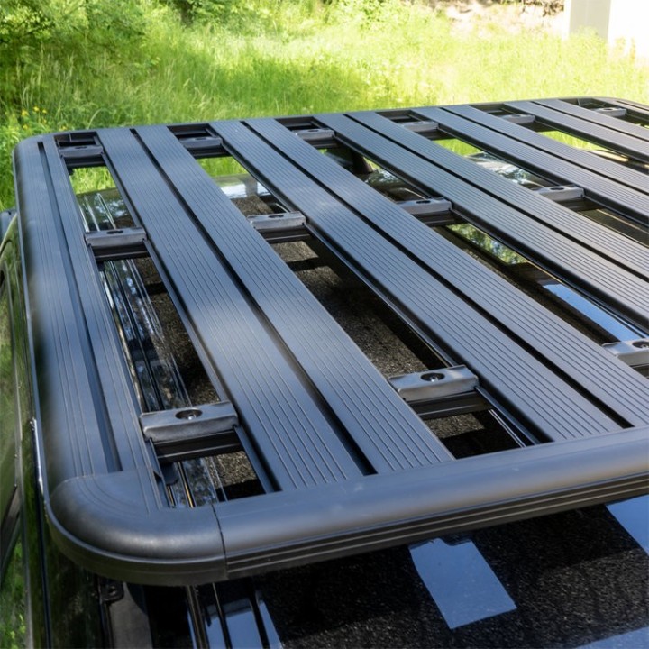 The platform features 5 bars and 3 crossbars connecting the assembly to the brackets. Along each of them and along the side bars, there is a T-slot, which facilitates the installation of additional accessories, such as LED light bars, awnings or mounting equipment.