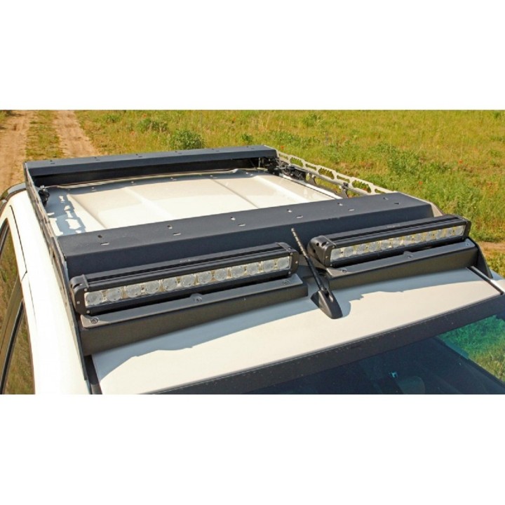 On the front of the roof rack there is a space for mounting the vehicle's front lighting in the form of long-range halogen lamps or LED panels with a maximum width of 110 cm (optional) .