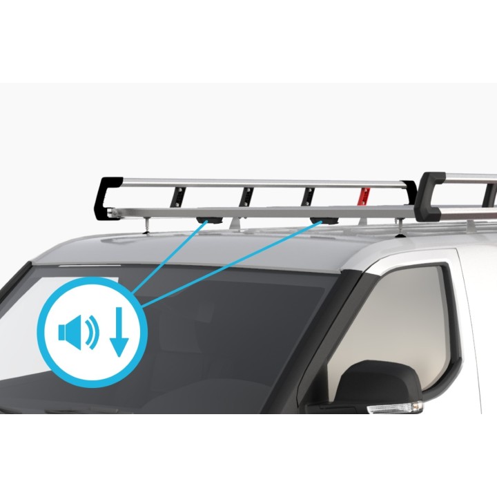 The Q-Top O19 roof rack is a high-quality aluminum load carrier for demanding professionals. The roof rack features stainless steel supports that perfectly adapt to the original mounting points of your Renault Kangoo. The Q-Top O19 has a distinctive and robust design and is available in two colors: silver anodized aluminum or with a scratch-resistant black powder coating. To minimize wind noise, the front crossbar is equipped with two wind diffusers. For additional noise reduction, you can opt for the optional front spoiler (note: only available in black). This front spoiler is supplied as standard with some car models.