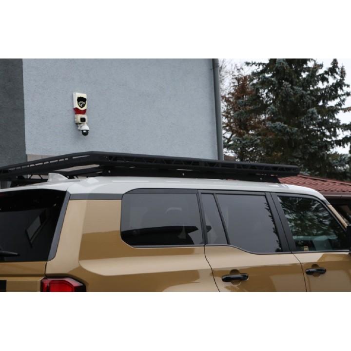 The TOYOTA LAND CRUISER 250 roof rack is a three-dimensional steel structure, galvanized, black powder-coated and externally finished with structural paint.