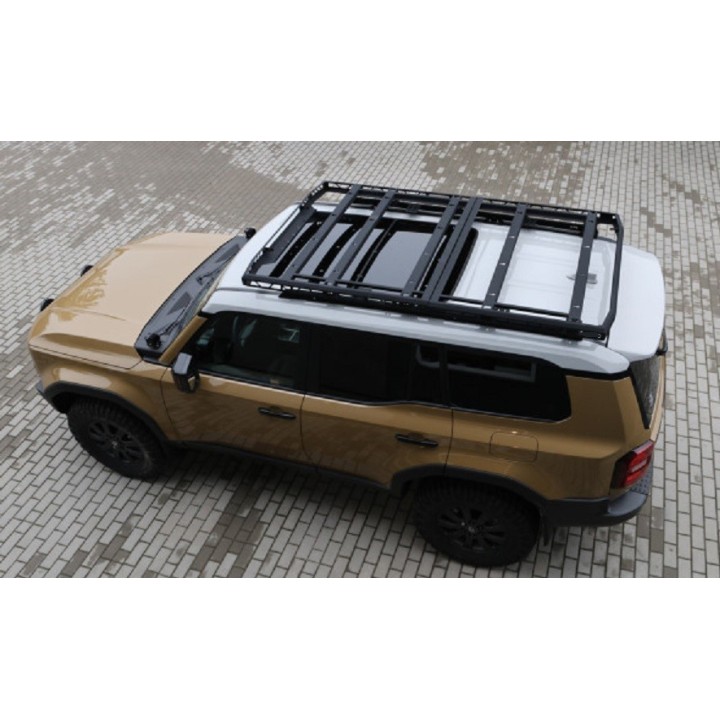 The platform consists of two parts, it is flat on top and suitable for mounting roof tents. On the upper surface, the off-road roof rack has holes to facilitate the installation of luggage nets and the screwing of any individual support.
