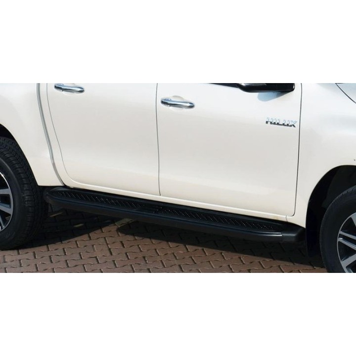 Running boards are wide aluminum plates with a profiled top. This ensures maximum slip resistance and helps you get into your vehicle safely.