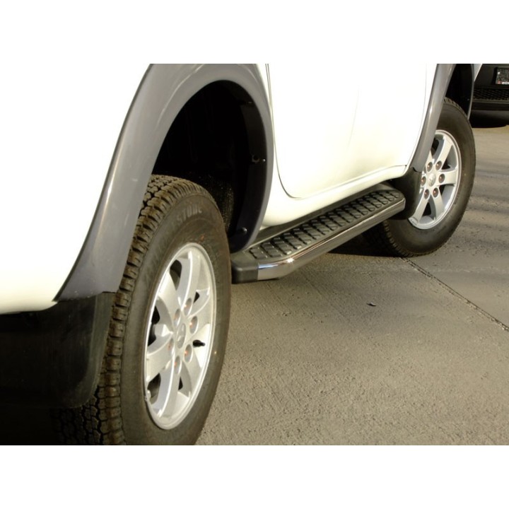 Running boards are wide aluminum plates with a profiled top. This ensures maximum slip resistance and helps you get into your vehicle safely.