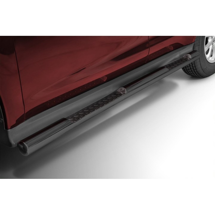 The stainless steel side running boards consist of bars 76 mm in diameter and 2 mm thick. Installation is non-invasive, using factory mounting points, so that the car retains its original construction.