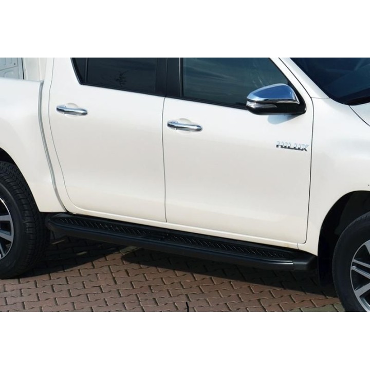 Running boards are wide aluminum plates with a profiled top. This ensures maximum slip resistance and helps you get into your vehicle safely.