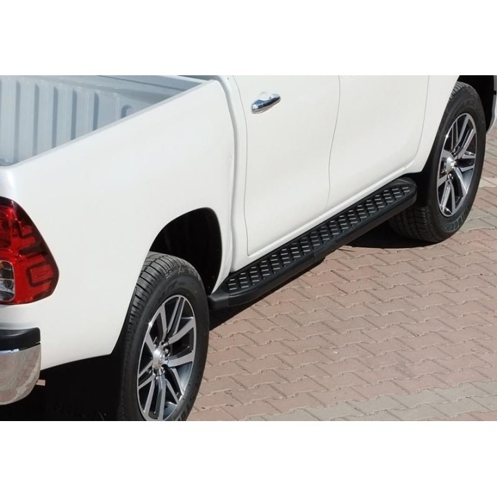 Running boards are wide aluminum plates with a profiled top. This ensures maximum slip resistance and helps you get into your vehicle safely.