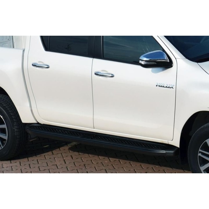 Running boards are wide aluminum plates with a profiled top. This ensures maximum slip resistance and helps you get into your vehicle safely.