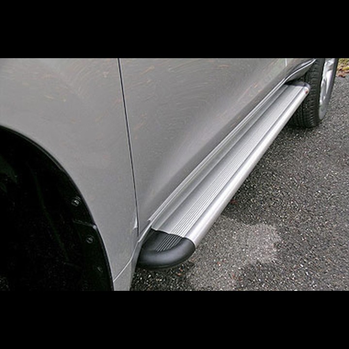 Running boards are wide aluminum plates with a profiled top. This ensures maximum slip resistance and helps you get into your vehicle safely.