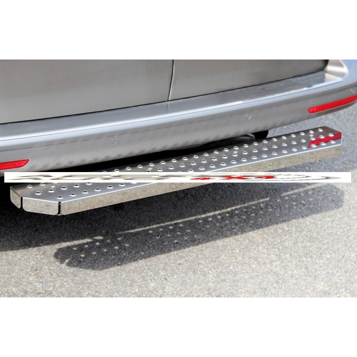 installs under the rear door of the vehicle. equipped with a non-slip STAINLESS STEEL system.