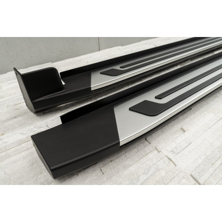 The various advantages: Running boards facilitate entry and exit, thus increasing comfort. They also provide protection against scratches or door dings. The resale value of the vehicle increases Exclusive and individual design Sporty and dynamic appearance Top quality: high-quality aluminum Perfectly adapted aerodynamics Load capacity per side 160 kg Easy loading of roof bars No drilling or welding required